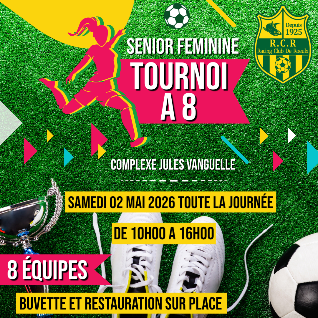 Le club de "R.C. ROEULX" est heureux de vous convier à son tournoi annuel Séniors Féminines. Cette année, nous accueillerons 8 équipes pour une journée complète de football dans une ambiance conviviale.