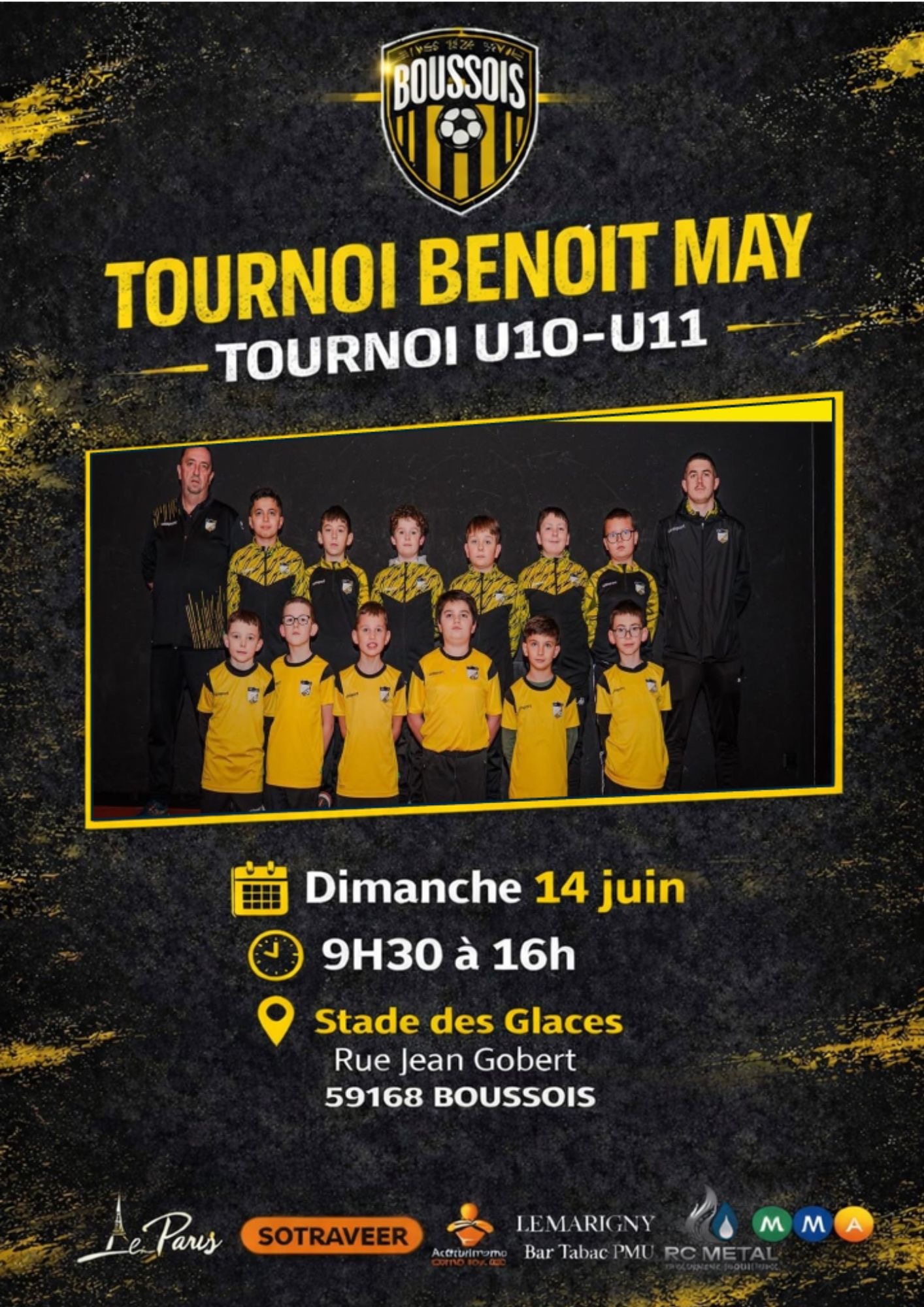 Le club de "ET.S. BOUSSOIS" est heureux de vous convier à son tournoi annuel U11. Cette année, nous accueillerons 16 équipes pour une journée complète de football dans une ambiance conviviale.