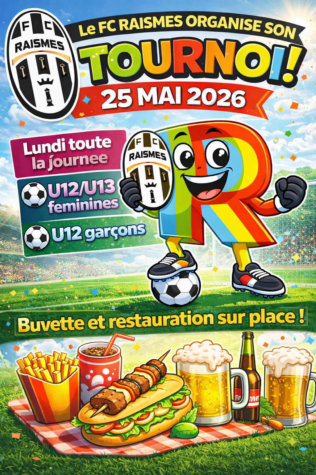 Le club de "F. C. RAISMES" est heureux de vous convier à son tournoi annuel U13 F. Cette année, nous accueillerons 12 équipes pour une journée complète de football dans une ambiance conviviale.